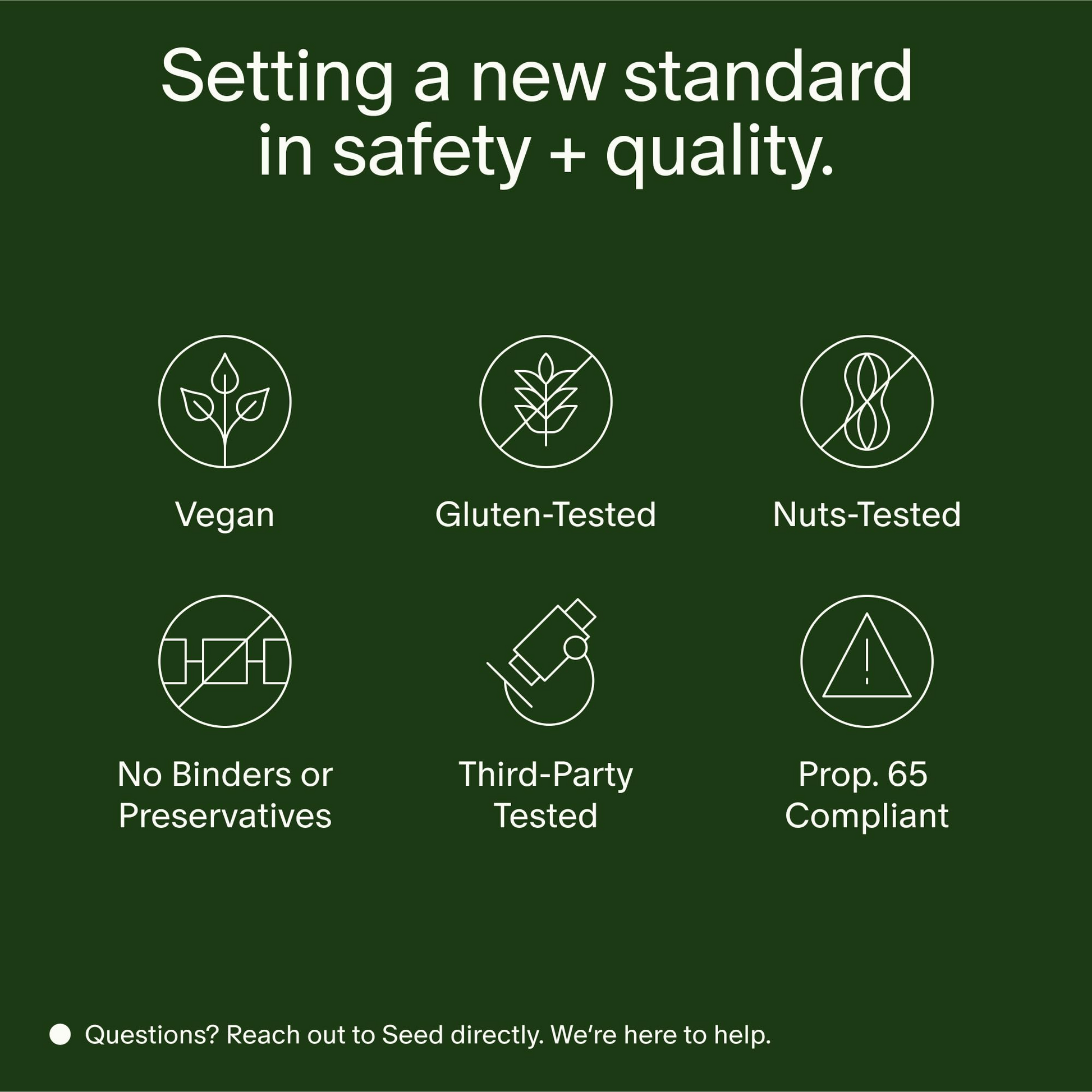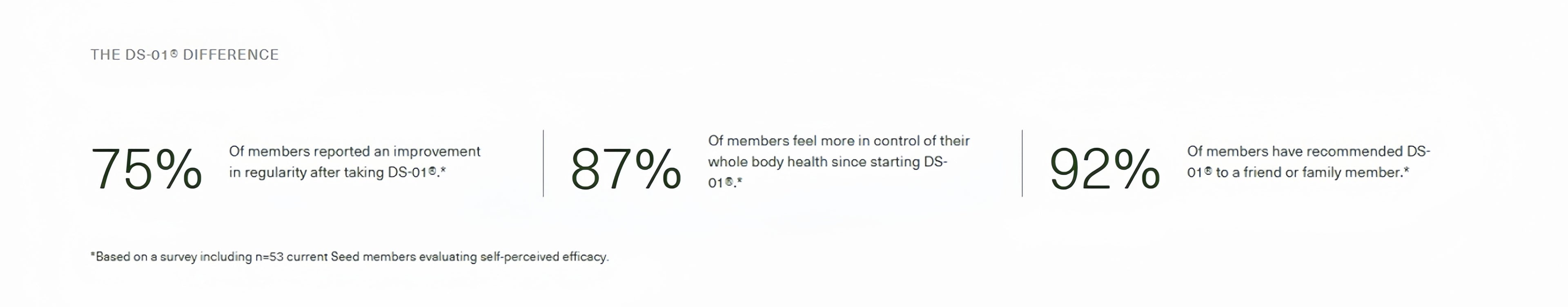 Your monthly subscription includes a 30-day supply of DS-01®. Your first month’s shipment is your Welcome Kit. It includes a reusable glass jar holding your first month’s supply, some Seed reading materials, and a complimentary travel vial that holds a week’s worth of your DS-01®, so you never miss a day on the go.